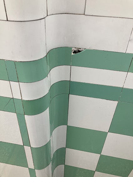 Working with the team at 'The Exchange' in Erith, Kent to creatively repair sections of their amazing Victorian tiled toilets.